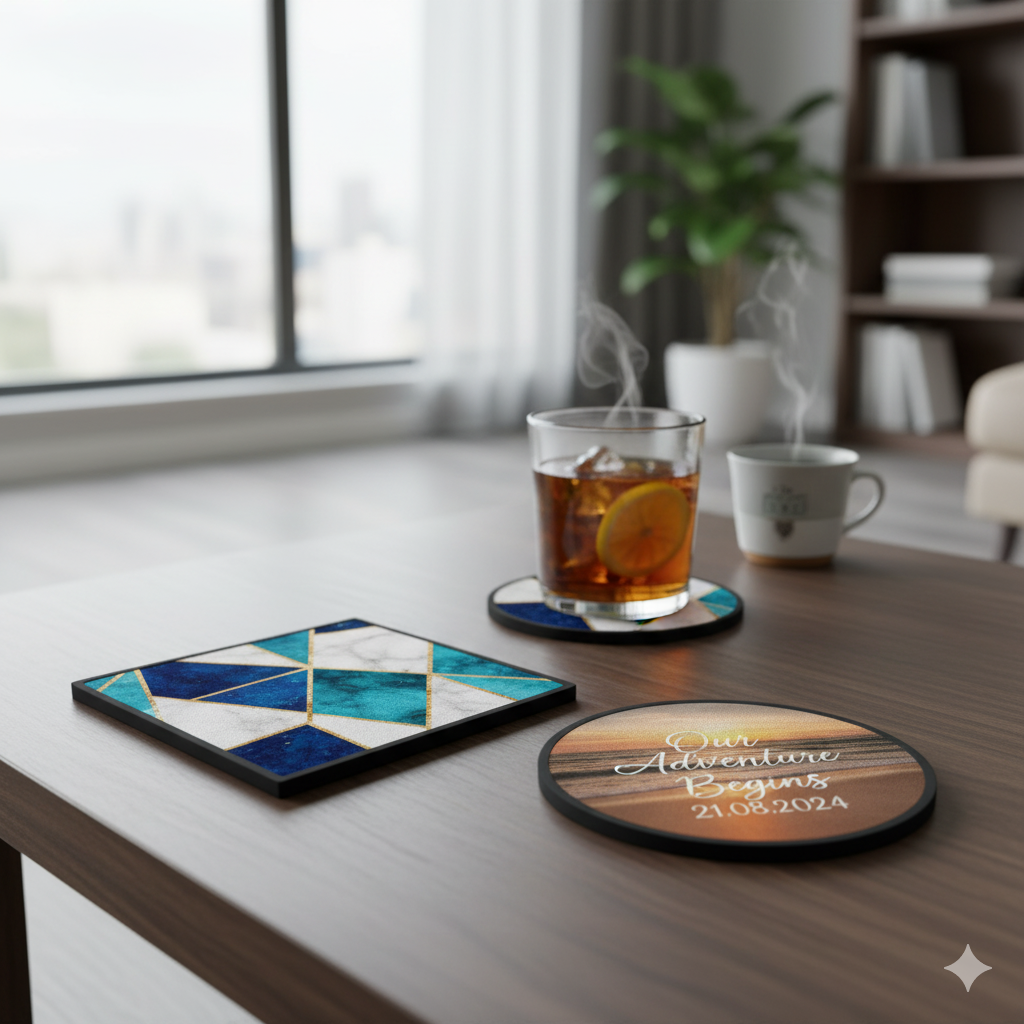 🍹 Detaliul care Contează: Suporturi de Pahar Personalizate (Coastere) – Păstrează Amintirile la Vedere