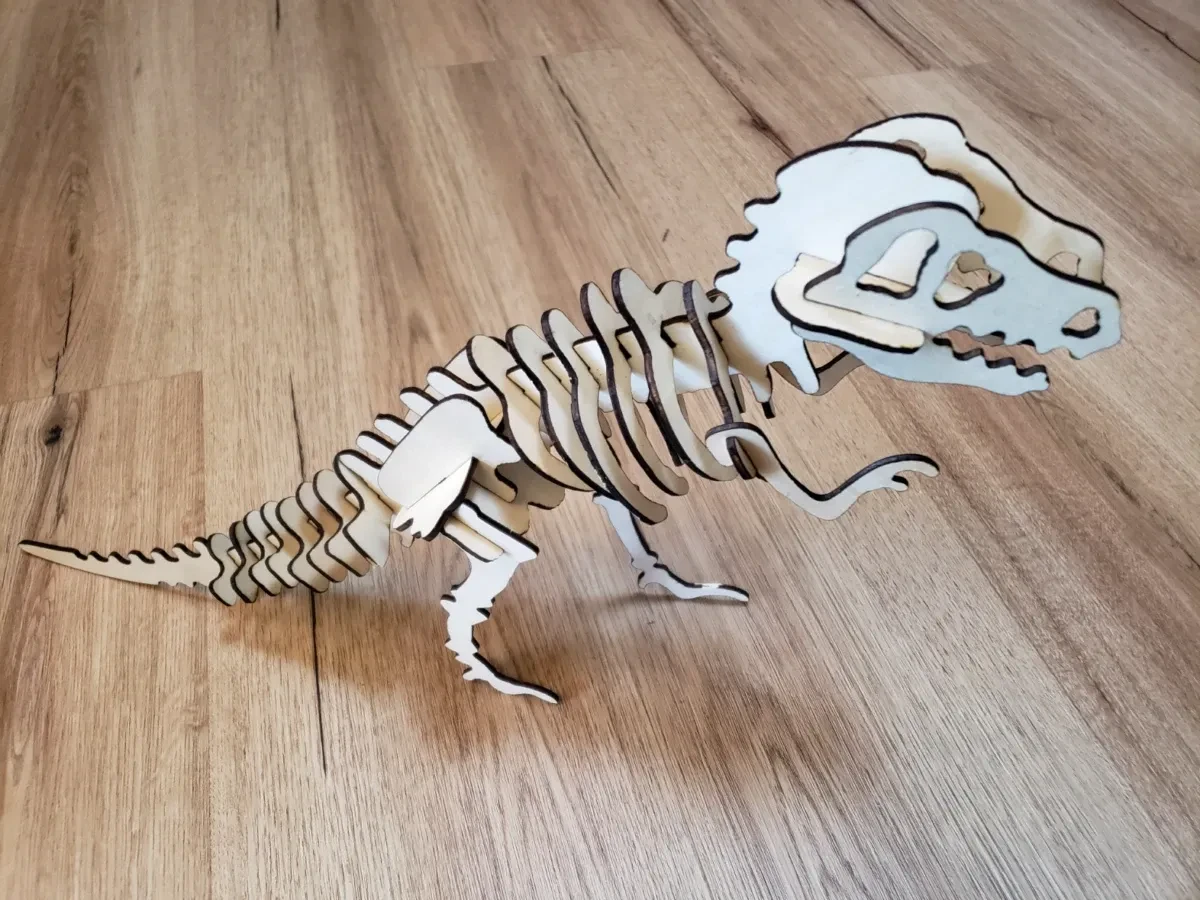 - Piesă de Expoziție: Odată finalizat, T-Rex-ul din lemn devine un element de decor spectaculos și de impact în biroul tău, în camera copilului sau în orice spațiu dedicat explorării.